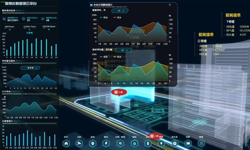 能對建筑內(nèi)的水、電、氣能耗進(jìn)行數(shù)據(jù)實(shí)時(shí)采集、匯總、分析,并上傳至管控中心,使用戶能源管理者直觀了解到本單位耗能情況,為用能管理提供數(shù)據(jù)支撐,可上傳至當(dāng)?shù)卣芎钠脚_(tái)